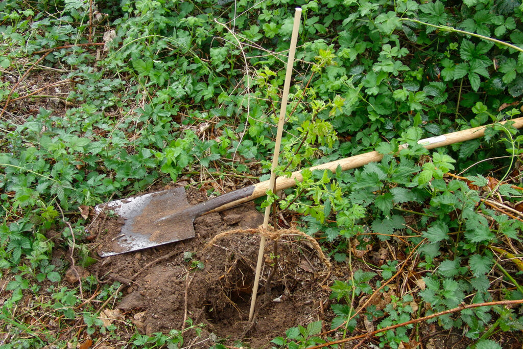Wir pflanzen junge, klimaresiliente Arten wie Stieleiche, Winterlinde, Esskastanie oder Hainbuche. Der Boden wird vorbereitet, Setzlinge gesetzt, und wir schĂĽtzen sie vor Trockenheit und Wildverbiss.